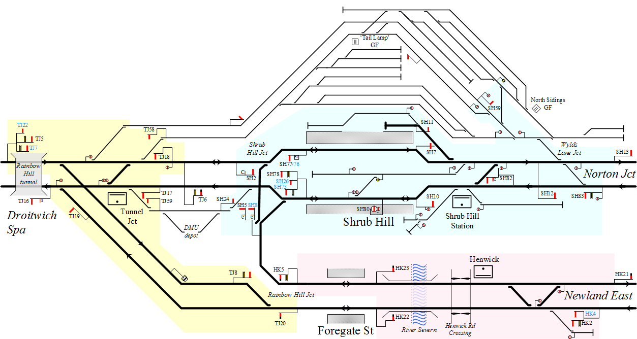 I've also produced a short video clip of the signals in action with a train from Bristol being held outside Shrub Hill until an up HST clears the platform.